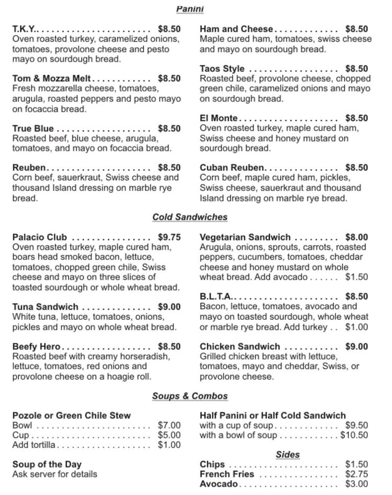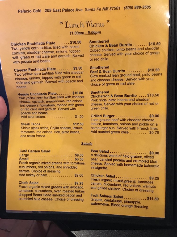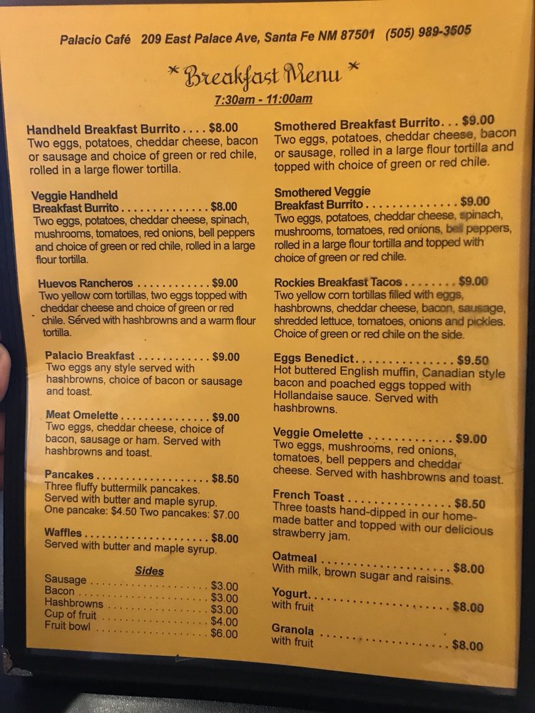Located in the heart of Santa Fe, the Palacio Restaurant offers a delightful blend of New Mexican cuisine, sandwiches, and breakfast options. With a charming ambiance adorned with colorful decor and outdoor seating, diners can enjoy their meals al fresco. The menu includes authentic dishes like huevos rancheros, fish tacos, and mothered breakfast burritos, all served with a flavorful kick. The attentive staff and generous portions make each dining experience enjoyable. Don't miss out on their delicious desserts, such as flan and huge chocolate chip cookies. Whether you're looking for a quiet spot for brunch or a place to enjoy happy hour with friends, Palacio Restaurant caters to all tastes and preferences. With vegan and vegetarian options available, this gem of a restaurant in Santa Fe is not to be missed.
