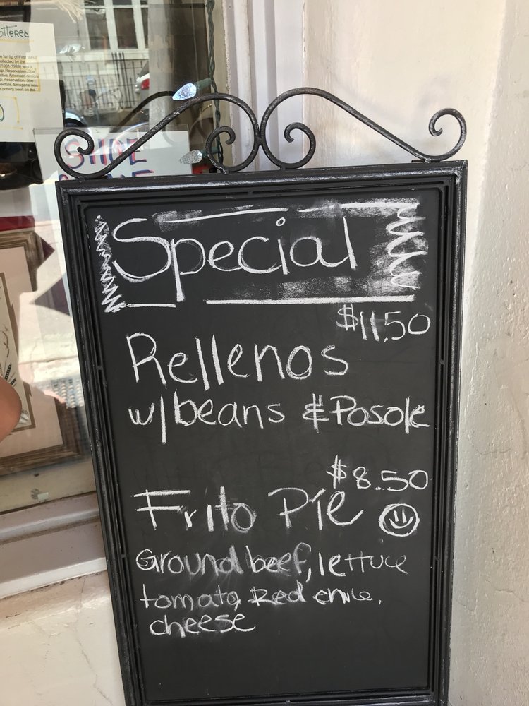 2 new Mexican chiles stuffed with cheese & covered on a crispy egg batter layer with green or red chile. Served with pozole and beans.